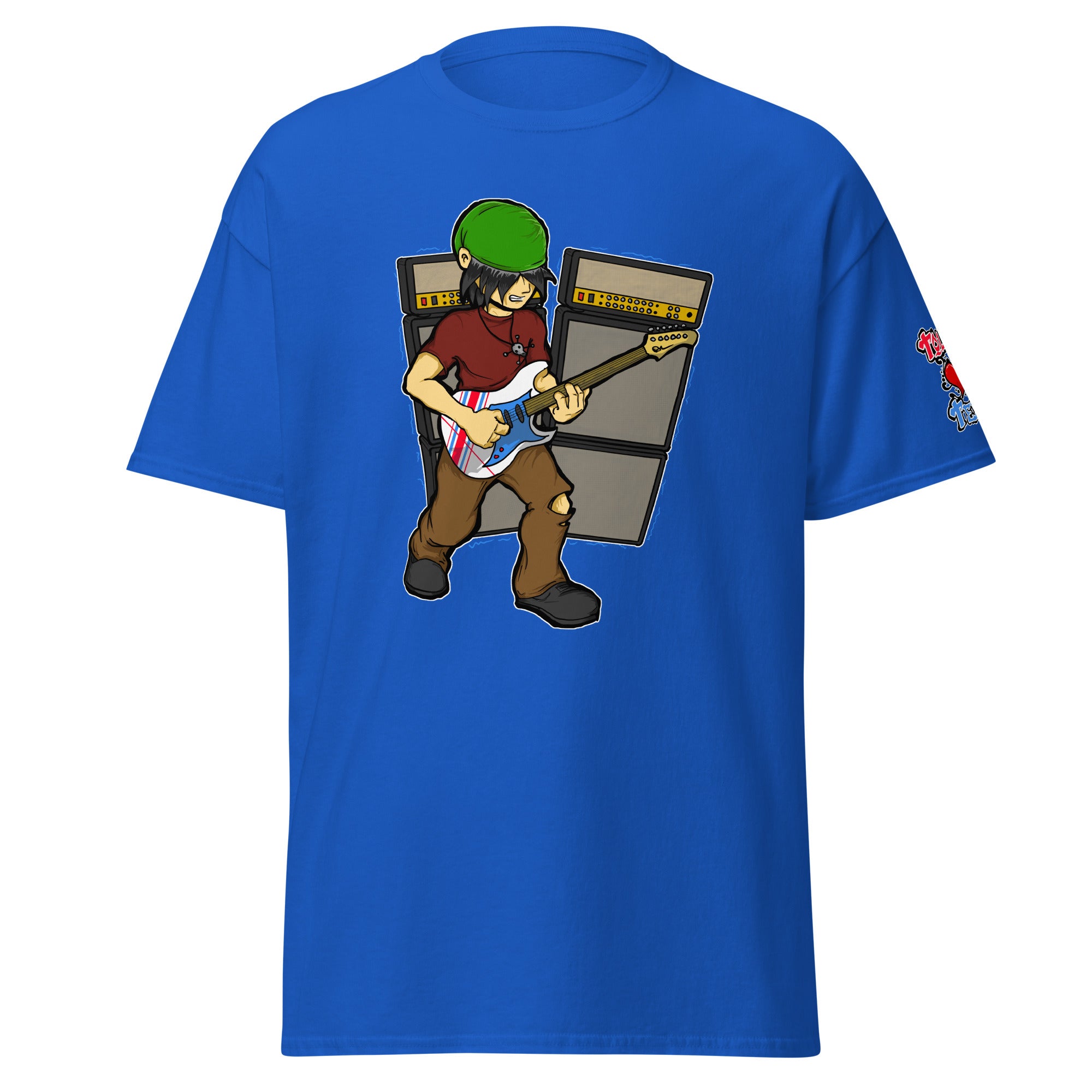 I bought this as I am a guitarist and the BO collection was perfect. I ordered the XL in Blue and the t-shirt is better than I expected. The shirt fits great, it's comfortable, and the print of BO playing the guitar looks wicked!! I purchased some other tees and hoodies at the same time and all of them were excellent quality and really cool designs.